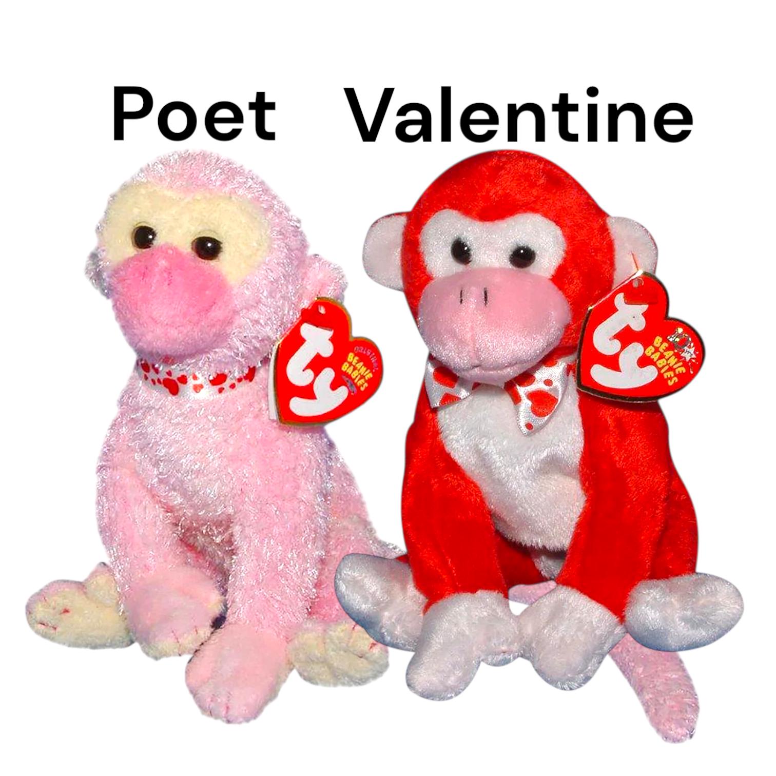 Ty Beanie Babies Valentine’s Day Loveypup, Heartbeat, Heartthrob, Lovie, Romeo & Juliet, Kissable, Bliss, Junglelove, Mischief, Lovesick Etc